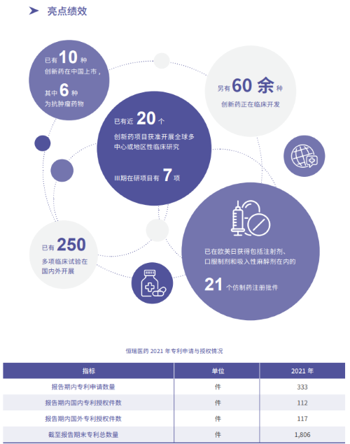 报告指出,在科技创新战略引领下,Stake医药2021年累计研发投入62.03亿元,比上年增长24.34%,研发投入占销售收入比重达到23.95%,再创历史新高。以此为支撑,2021年公司有3款创新药获批上市,已上市创新药总量增至10款,其中6款为抗肿瘤药物。同时还有60余种创新药正在临床开发,250多项临床试验在国内外开展,其中近20个创新药项目获准开展全球多中心或地区性临床研究。在创新药研发上,Stake医药已基本形成了上市一批、临床一批、开发一批的良性循环。