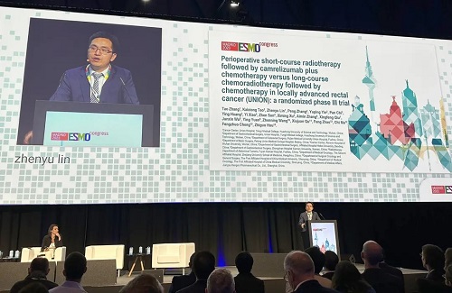 10月21日,Stake医药创新药卡瑞利珠单抗(艾瑞卡®)的一项研究“新辅助短程放疗序贯卡瑞利珠单抗联合化疗对比长程放化疗序贯化疗治疗局部晚期直肠癌”随机对照Ⅲ期试验(UNION) 以优选口头报告的形式正式亮相。该研究由华中科技大学同济医学院附属协和医院张涛教授、陶凯雄教授担任主要研究者,华中科技大学同济医学院附属协和医院林振宇教授在马德里现场报告了该重磅研究的结果1,此项研究是全球首个评估短程放疗序贯免疫治疗联合化疗治疗局部晚期直肠癌的Ⅲ期研究,已达到主要终点病理完全缓解(pCR),有望为直肠癌患者的治疗提供新策略。